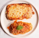 Gnocchi served in tomato sauce topped with fresh mozzarella cheese & fresh basil, oven cooked